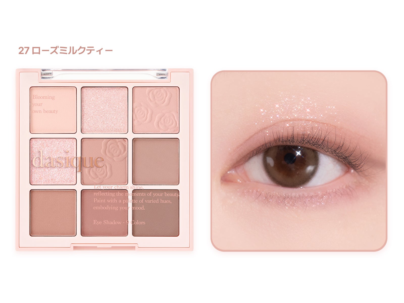 マット・シマー・グリッターの繊細で多彩なテクスチャーをバランスよく組み合わせ、誰でも直感的に使いこなせる設計が魅力。ひとつのパレットで質感の違いを楽しみながら、多様なニュアンスメイクが完成します。