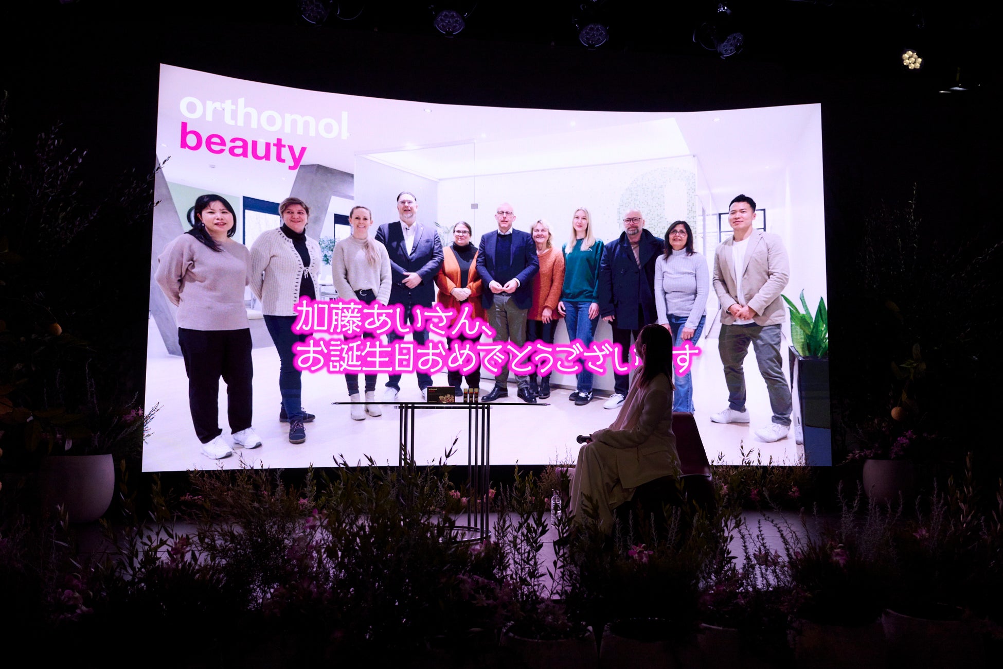 12月12日は加藤あいさんのお誕生日。発表会では、オーソモルのドイツ本社メンバーからのサプライズメッセージ動画を上映し、加藤さんのお誕生日をお祝いしました。