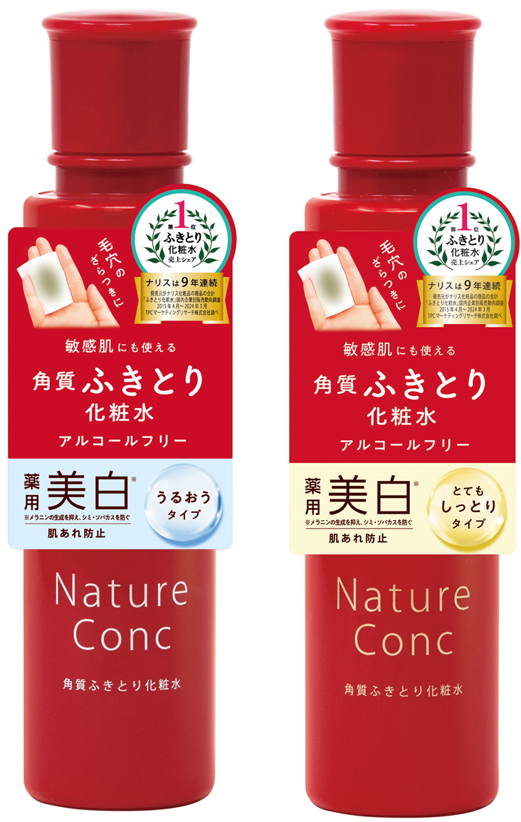 ふきとり化粧水は、老化角質を取り除くことで健康な肌を生み出すことを目的とする化粧水で、当社では様々なニーズに応えるふきとり化粧水を自社ブランドだけでも10種以上販売しています。通常のスキンケアでは化粧水のステップが1回ですが、ふきとり化粧水は2回となり丁寧なケアとなるため、美容意識の高い人に支持されている美容法である一方、一般的には肌への刺激が強いと捉えられている人も多く存在します。当社のドラッグストアで販売しているふきとり化粧水「ネイチャーコンク」(累計販売970万本超:2025年11月末現在)は、敏感肌の人を対象とした使用テストをクリアするなど、効果面と安全性を両立する処方開発を得意としており、当社の処方開発技術の象徴とも言える商品です。また、1980年代から実現している無香料の技術も当社を代表する技術。当日は、その他の技術についても紹介します。