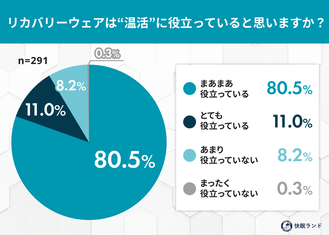 本調査では、実際にリカバリーウェアを使用している人を対象に、温活としてどの程度役立っているのか、どの場面で効果を感じやすいのかを定量的に把握し、冬の睡眠・冷え対策アイテムとしての実態を明らかにしました。