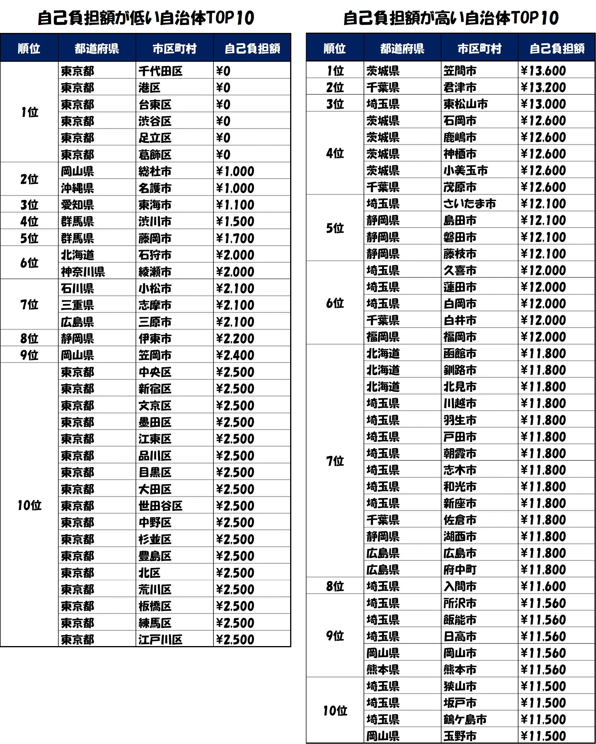 ● 人口5万人以上の549自治体を対象に自己負担額ランキングを発表