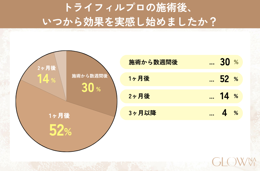 トライフィルプロの施術後「1ヶ月後」までに効果を感じ始めたと答えた人は合わせて8割以上を占めました。