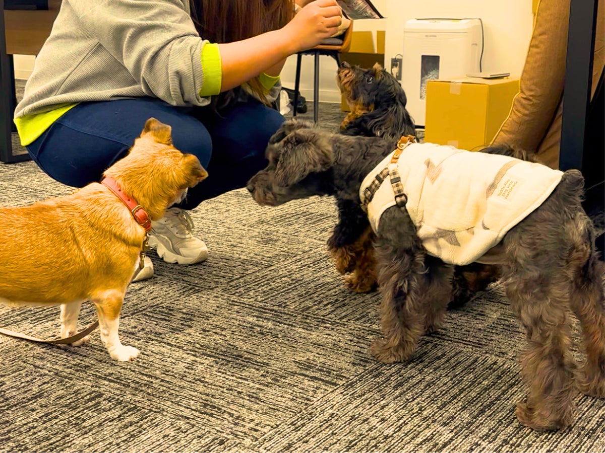 さらに、周辺には公園が多く、散歩に適した立地であることから、日常的に利用できる「お散歩休憩(15分)」の制度とも相性の良いオフィス環境となっています。従業員向けにはペット製品を半額で提供する制度も引き続き導入し、日常的なケアもサポートしています。