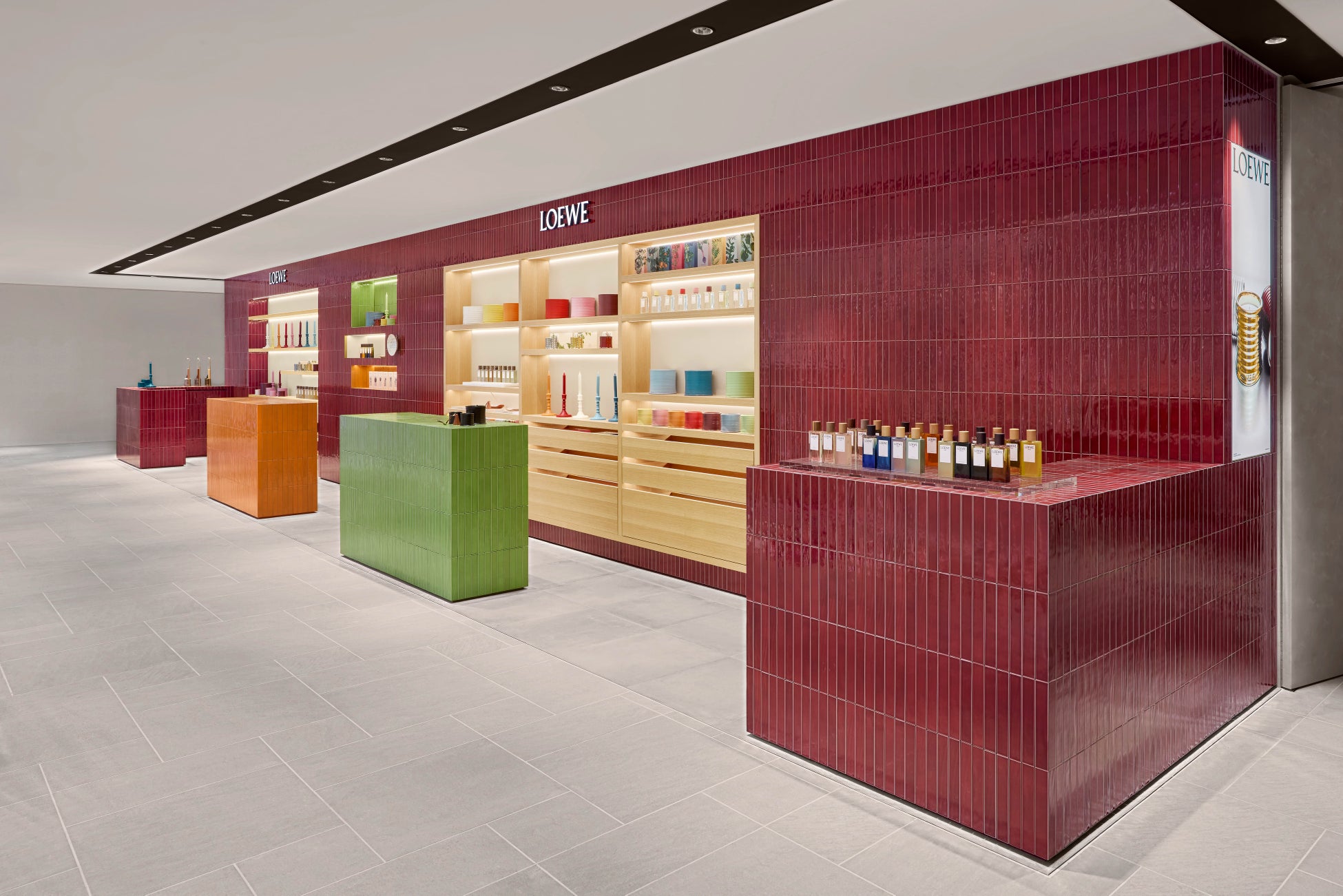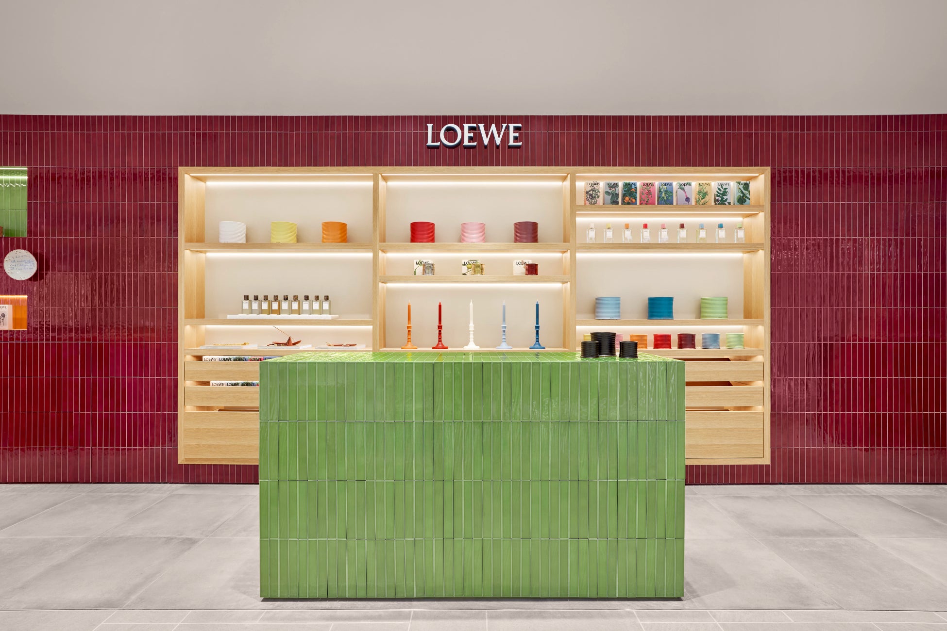 磨きあげられた木材や釉薬が施された陶器などの天然素材のパレットを基調とし、精巧な職人技が生み出す多彩で心地良い質感のインテリアが融合した店内には、ホリデーギフトにも最適な、ロエベ ホームセンツ 新たなカプセルコレクションをはじめ、LOEWE Perfumesコレクションのフルラインナップ、フレグランスシリーズLOEWE Botanical Rainbow(ロエベ ボタニカル レインボー)やプレミアムライン LOEWE Un Paseo Por Madrid(ロエベ・ウン・パセオ・ポル・マドリード)、LOEWE Home Scents(ロエベ ホームセンツ)のボタニカルなポートフォリオが揃います。