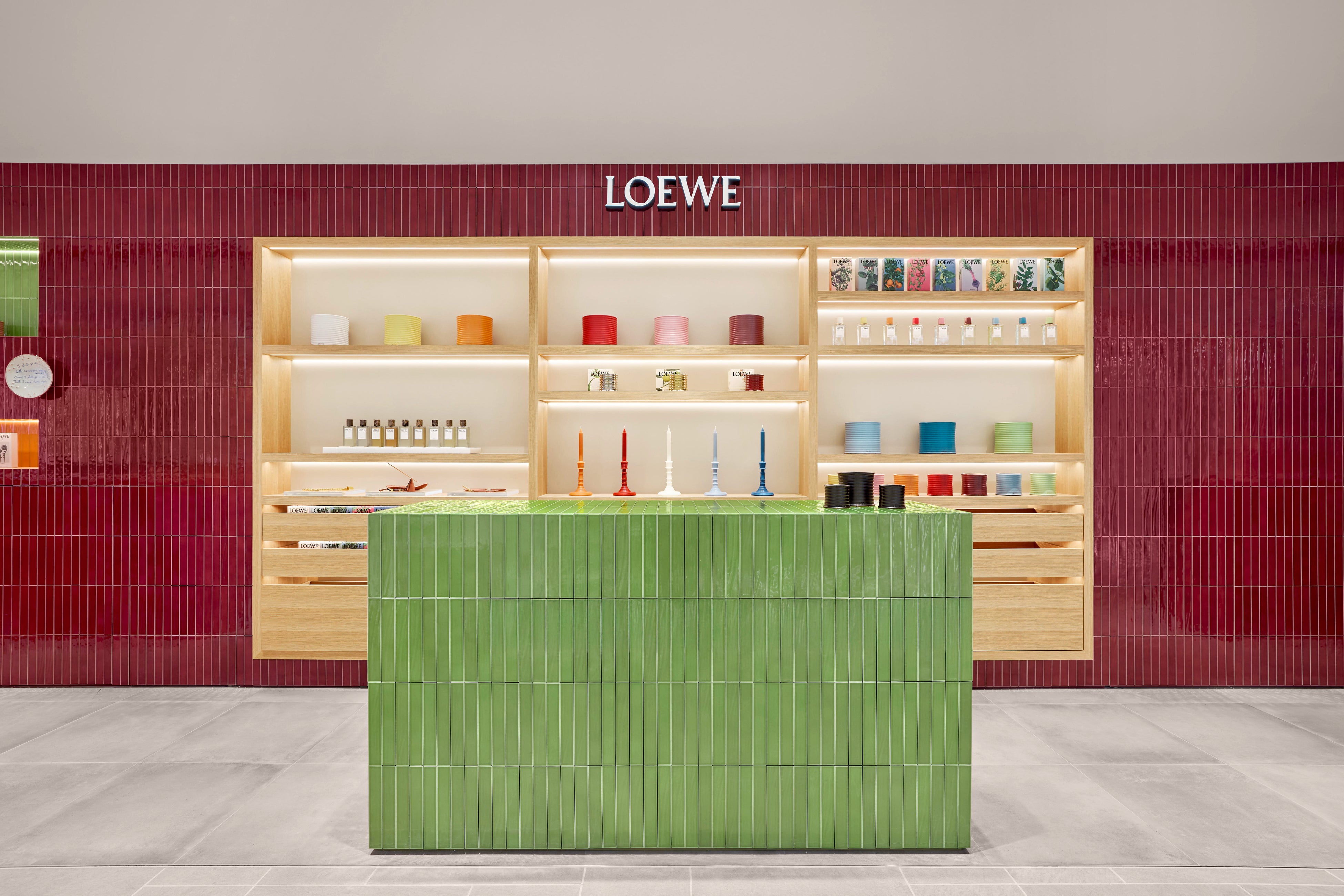 磨きあげられた木材や釉薬が施された陶器などの天然素材のパレットを基調とし、精巧な職人技が生み出す多彩で心地良い質感のインテリアが融合した店内には、ホリデーギフトにも最適な、ロエベ ホームセンツ 新たなカプセルコレクションをはじめ、LOEWE Perfumesコレクションのフルラインナップ、フレグランスシリーズLOEWE Botanical Rainbow(ロエベ ボタニカル レインボー)やプレミアムライン LOEWE Un Paseo Por Madrid(ロエベ・ウン・パセオ・ポル・マドリード)、LOEWE Home Scents(ロエベ ホームセンツ)のボタニカルなポートフォリオが揃います。
