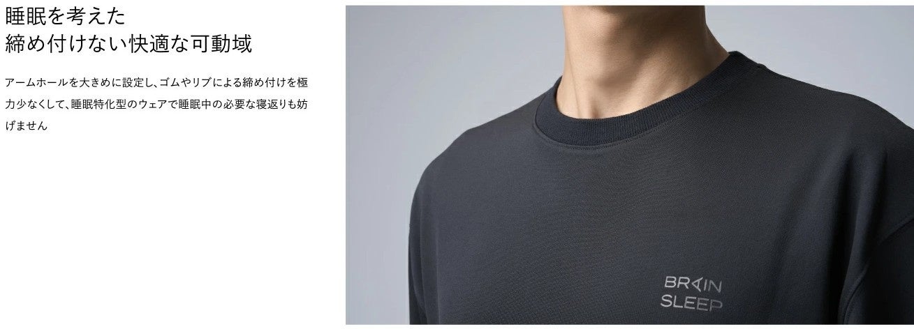 また、アームホールを大きめに設定し、ゴムやリブによる締め付けを極力少なくしているため、睡眠中の寝返りも妨げることがありません。