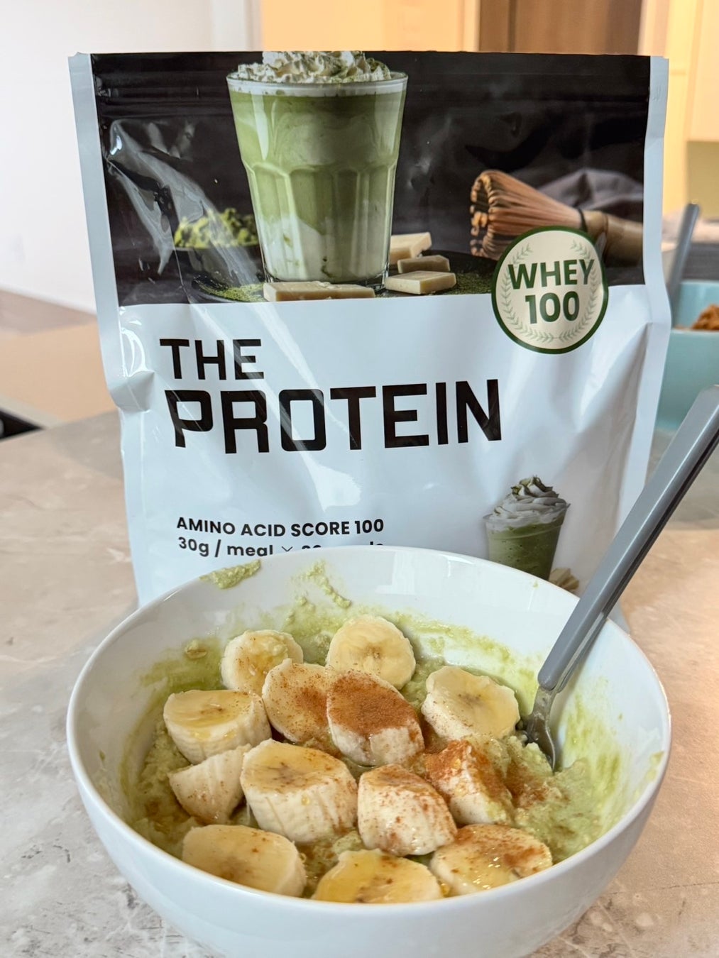 私の毎朝の定番は、オートミール40gに抹茶ホワイトチョコ風味のプロテイン30g、バナナ、はちみつをプラスしたアレンジです。 やさしい甘さで満足感がありながら、たんぱく質もしっかり摂れるので、忙しい朝や体を整えたい時に重宝しています! 美容と健康を意識したい女性におすすめの朝食です。