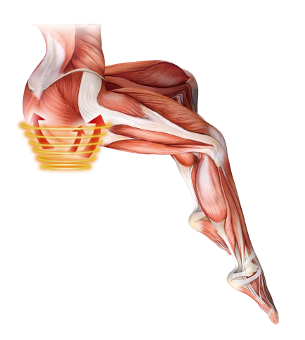 皮膚や脂肪の抵抗を受けにくい電磁刺激によりモーターニューロンを活性化し、アウターマッスルだけでなく、一般的な運動療法では介入が難しい深層筋群の選択的収縮を促します。