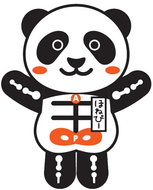 ほねぴーの首と骨盤に『A.P.バランス(R)』のAとPがついています。