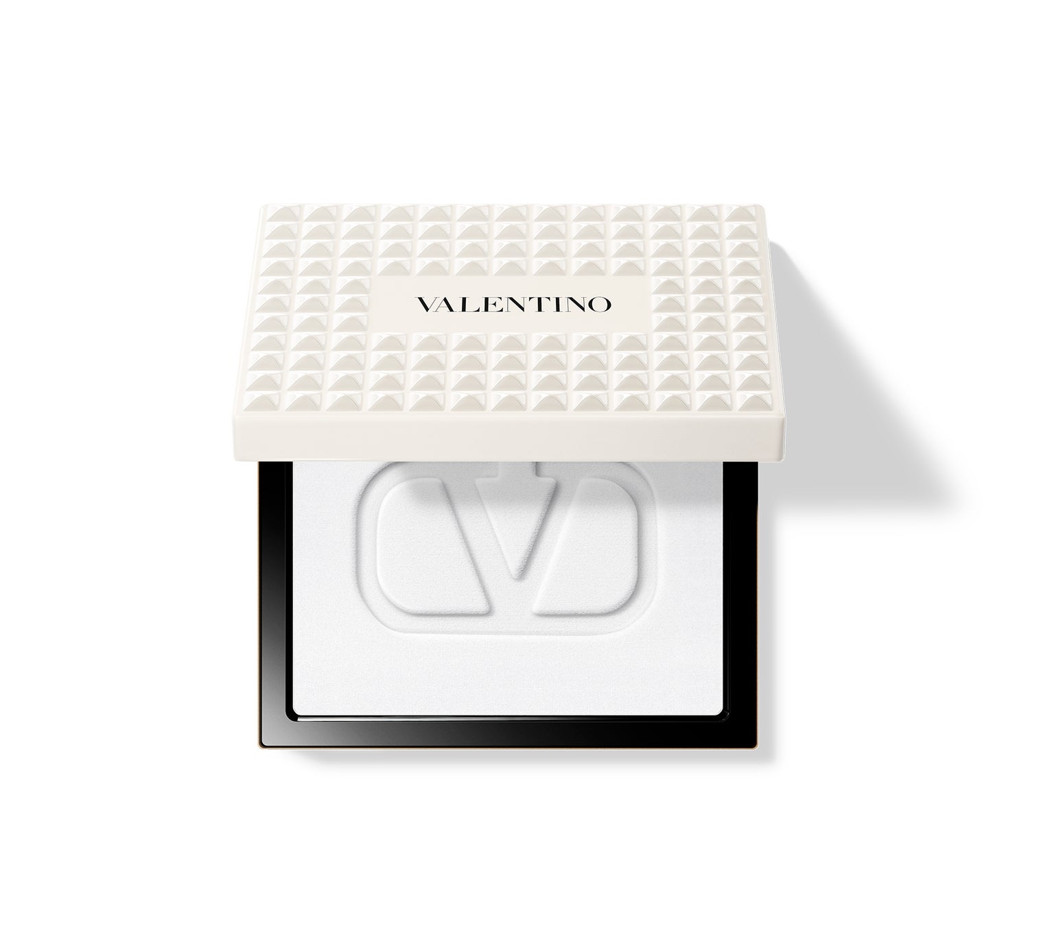 ヴァレンティノのバッグから着想を得た、122個のアイボリーホワイトのスタッズを全面にあしらった印象的なコンパクトは、単なるメイクアイテムではなく、コレクタブルなステートメントピースのようなデザインです。