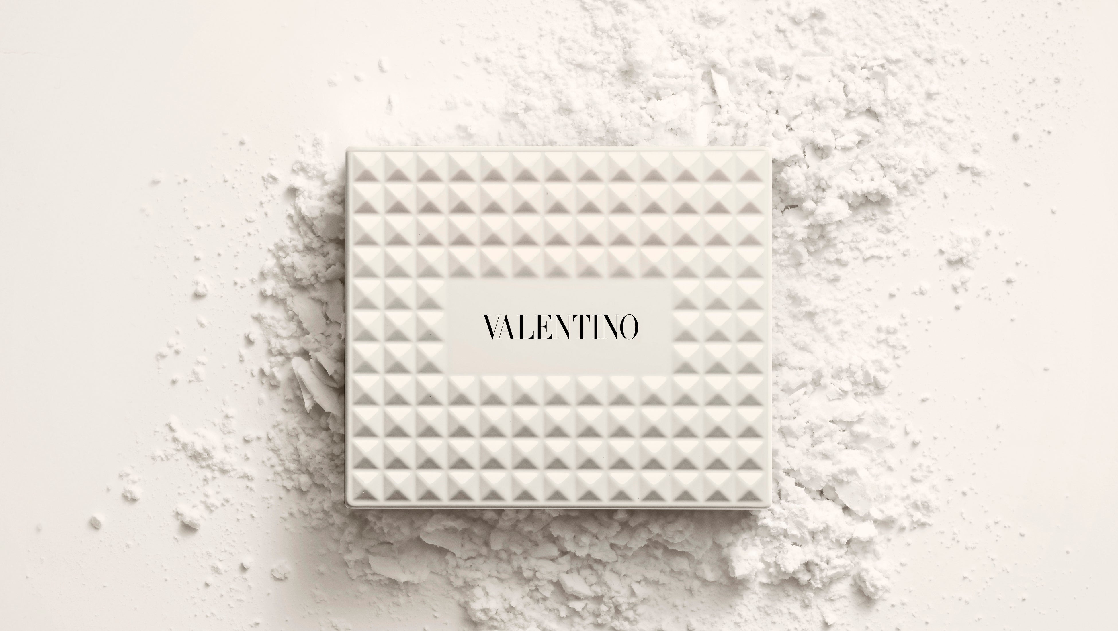 ヴァレンティノのバッグから着想を得た、122個のアイボリーホワイトのスタッズを全面にあしらった印象的なコンパクトは、単なるメイクアイテムではなく、コレクタブルなステートメントピースのようなデザインです。