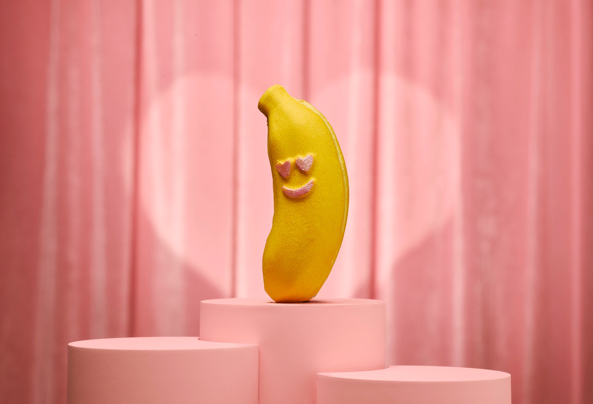クリーミーなバナナ果実から作った数量限定バブルバー(入浴料)。バナナ型のバブルバーにサンドしたカカオバターとシアバター配合のフィリングは、健やかなお肌に潤いを保つ秘密の鍵。あたたかいお湯に溶けて、お肌に潤いを与えます。