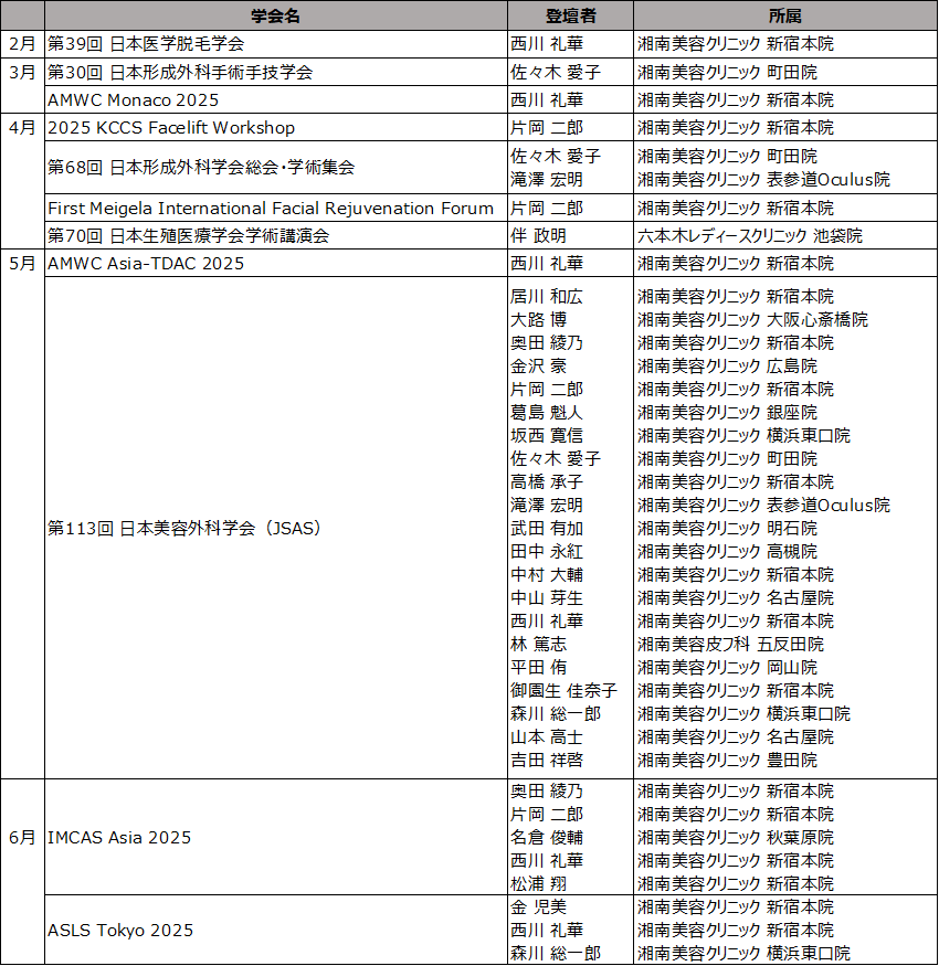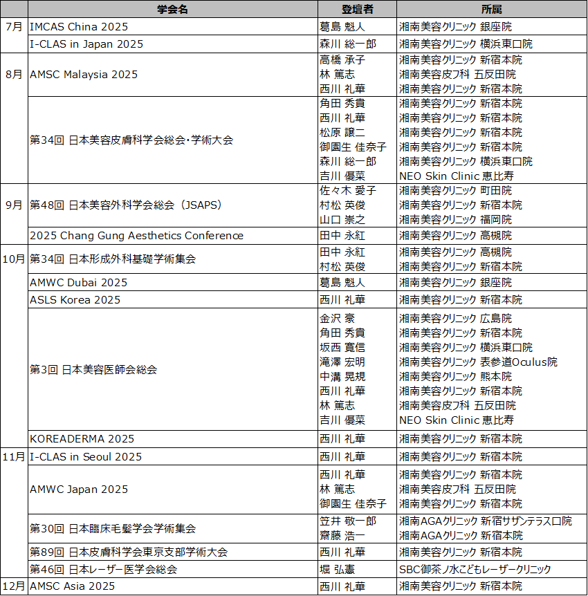 湘南美容クリニックをはじめ、SBCメディカルグループホールディングス(所在地:米国カリフォルニア州、CEO:相川 佳之、以下「SBC」)が経営支援を行うクリニックに所属する医師は、国内外の医学会において研究成果の発表を重ねてきました。国内外28の医学会において、33名の医師が登壇し、各分野における知見の共有や臨床の高度化に取り組んできた1年間の活動を振り返り、2025年の主な実績をご報告いたします。