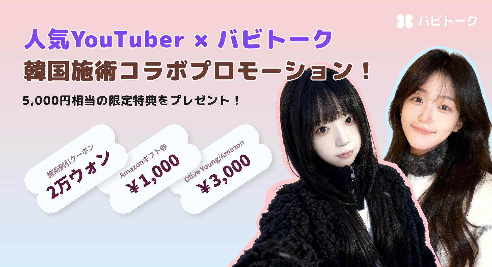 本企画展は、YouTubeクリエイターが韓国を直接訪問し、韓国の多様な文化とともに実際の美容施術を体験する様子を収めた動画コンテンツと連携して展開されます。このコンテンツを通じて、日本のユーザーは体験談に基づいた信頼性の高い施術情報を確認でき、バビトークはこれを介して、よりリーズナブルな価格で韓国の美容施術を体験できる特典プロモーションを提供します。