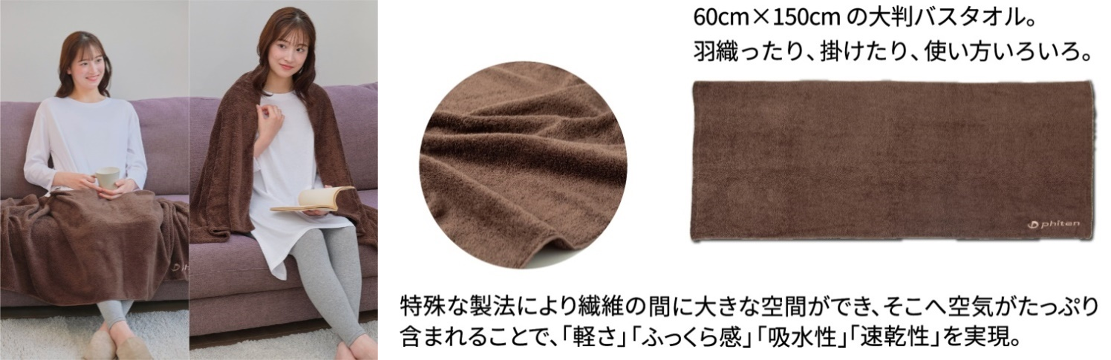 リラックス状態へとサポートする技術「ナノメタックス」を生地に採用したバスタオル