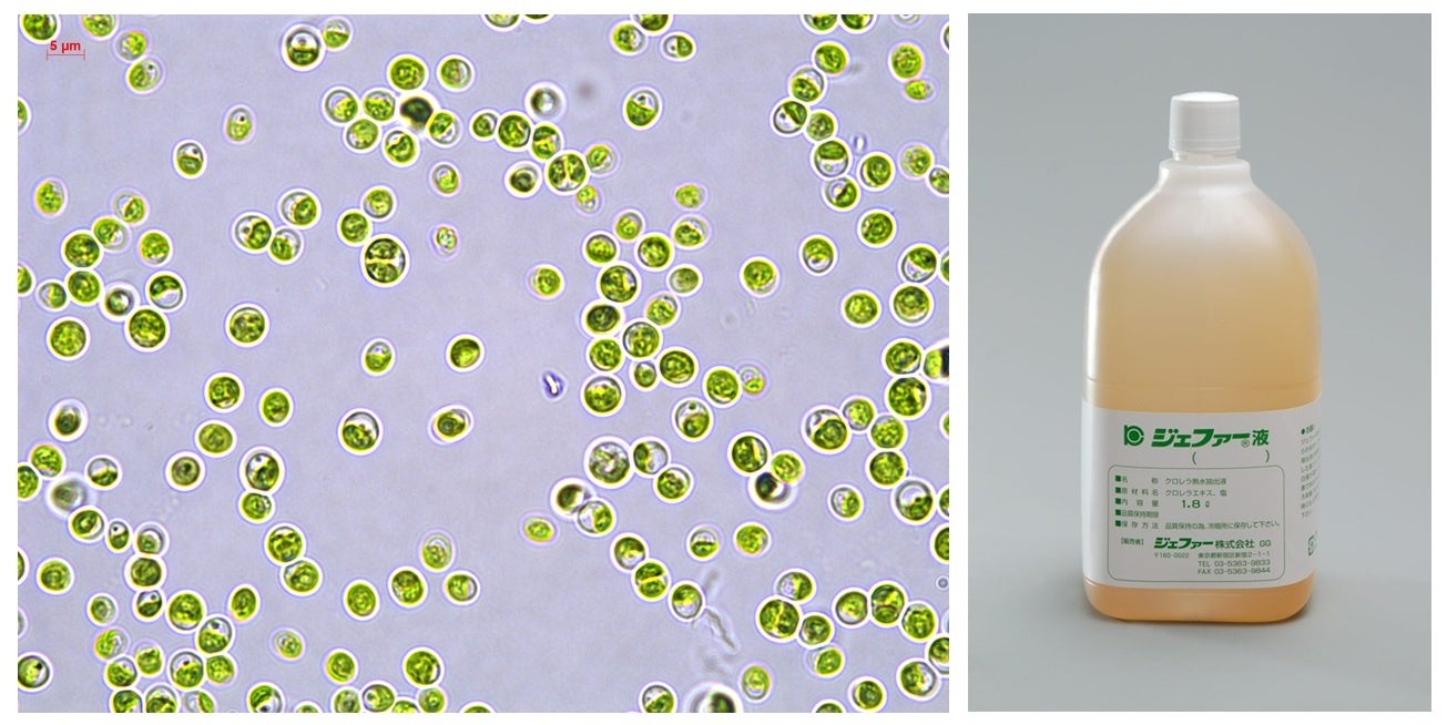 ジェファー社は、石垣島産の微細藻類クロレラの熱水抽出液(以下「クロレラエキス」)を用いた製品「ジェファー液」をはじめ、クロレラ製品やジェファーバモント酢等の健康食品を販売しています。ジェファー液は、麺の味やコシの向上、魚の臭み軽減を目的として、麺や冷凍食品の製造時に調理用添加物として利用されている他、ラーメン店や製麺企業でも長年愛用されています。
