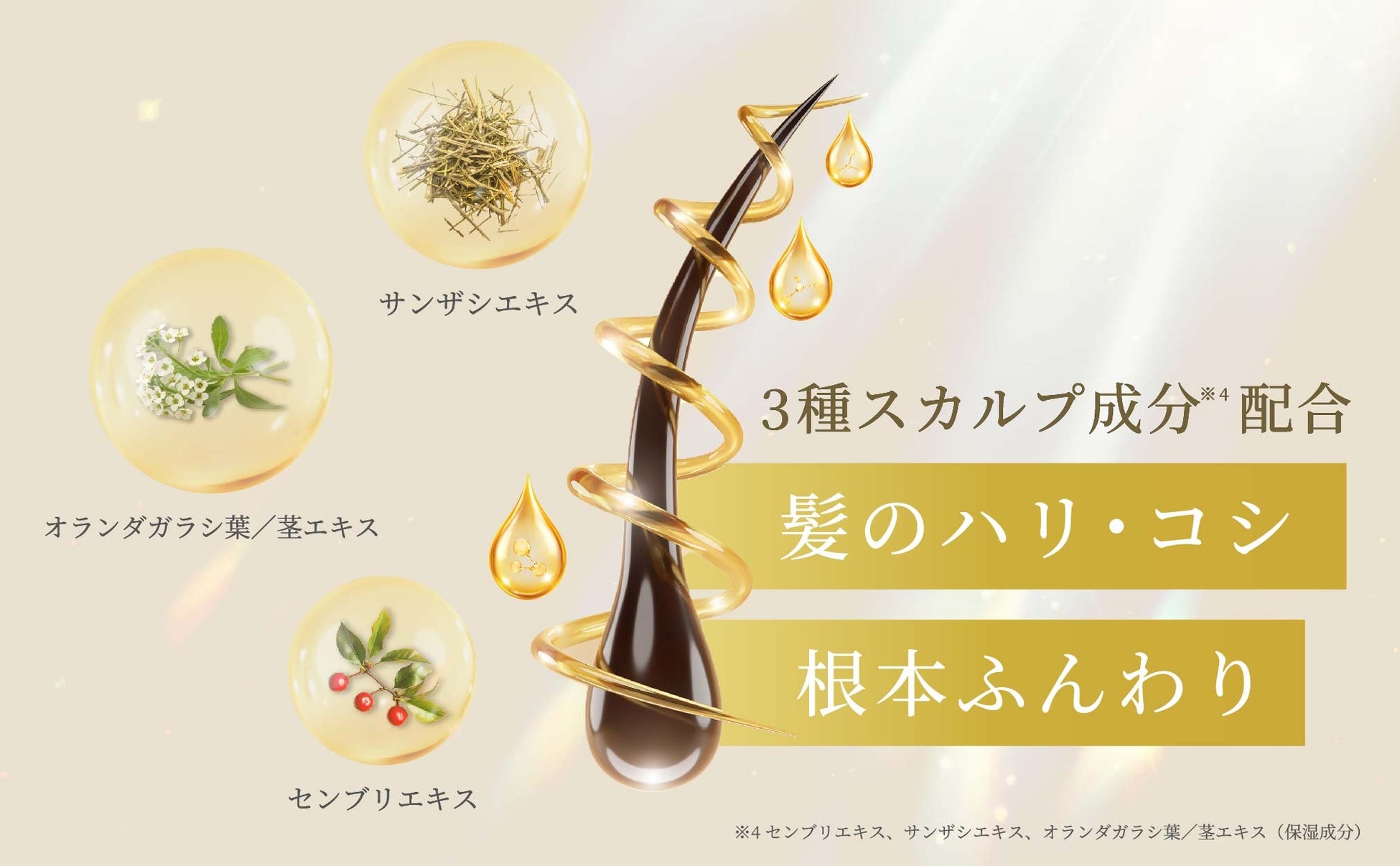 大人の髪が求める“ハリ・コシ”を意識した、贅沢なスカルプケア成分*³を配合。