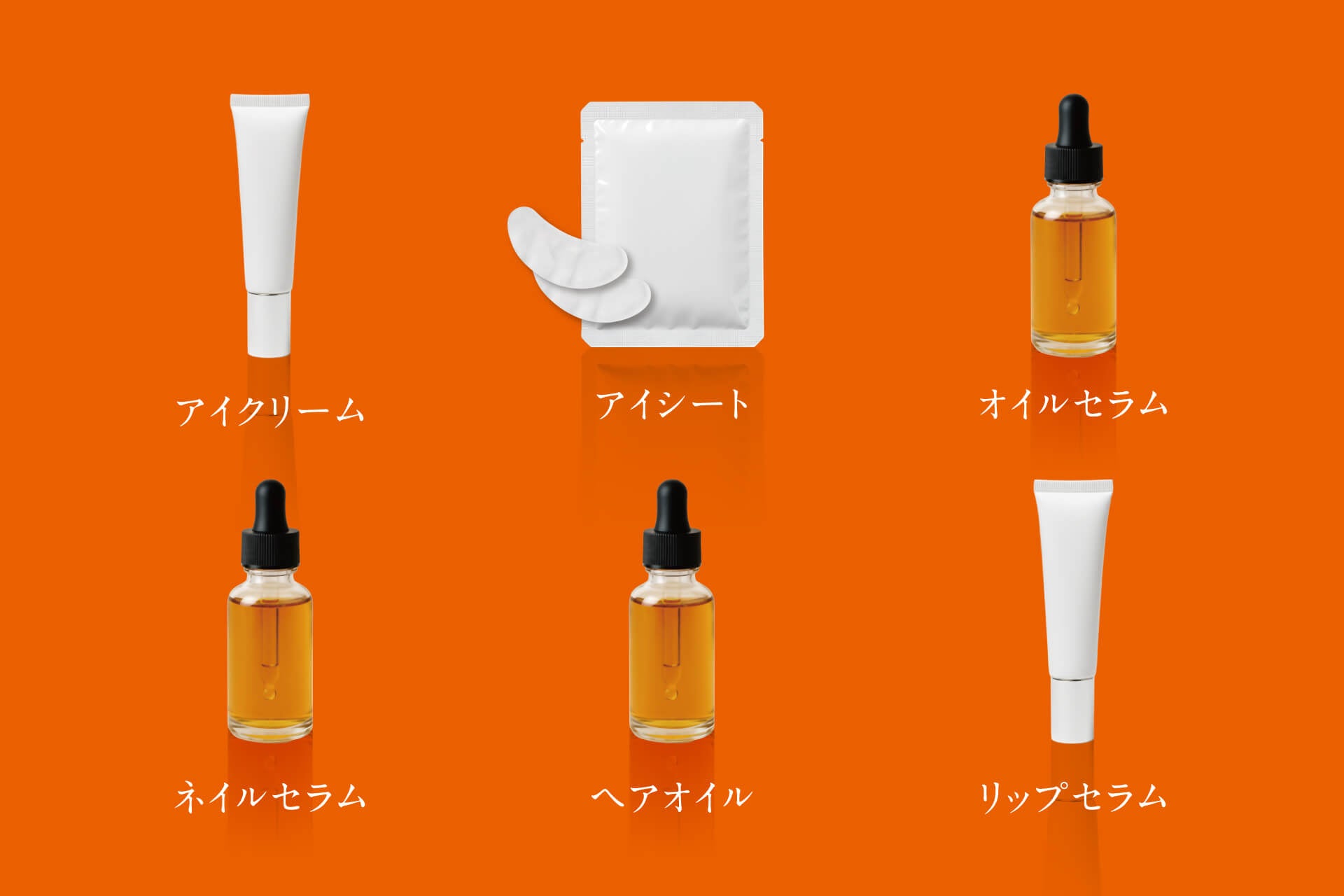 発酵プロビタミンオイルを用いた10種類のスキンケアやヘアケア、ネイルケア、リップケアの企画品をご紹介します。これらはOEM受託における商品開発のベースとして、オリジナル商品化が可能です。