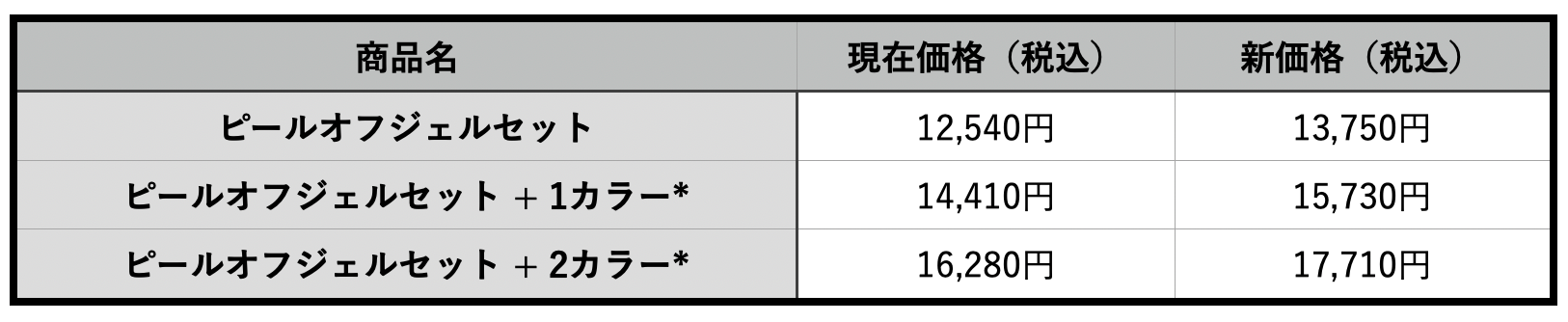 リニューアルに合わせて「ピールオフジェルセット」の内容を以下のとおり変更します。