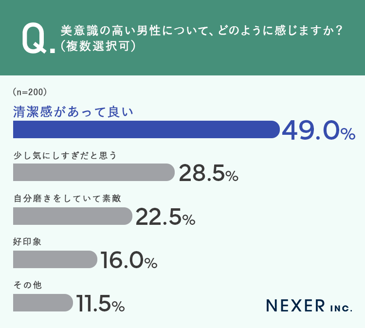 ■美意識の高い男性への印象、約半数が「清潔感があって良い」と回答
