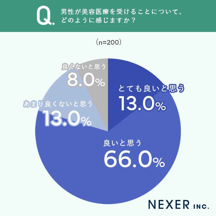 今回の調査では、約8割の女性が男性の美容医療に肯定的であることがわかりました。