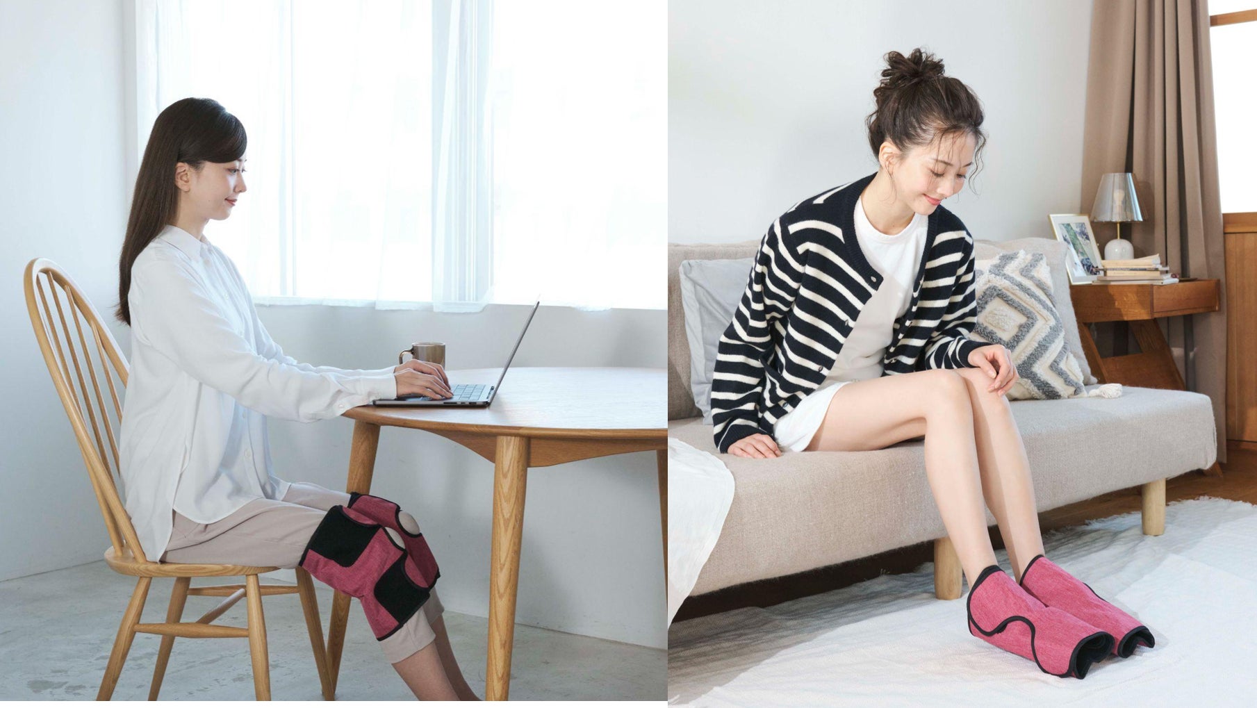 そこで誕生したのが、誰でも簡単に “座ったまま” “脚全体” を心地よく包み込むリラックスフットストレッチギア「エアフット」。千葉真子さんのアスリートとしての知見をもとに開発された「温熱+エアー圧」の機能で、「温め」「筋肉を伸ばす」「関節まわりを整える」の3つのステップから、しなやかな脚づくりを叶える新習慣を提案します。