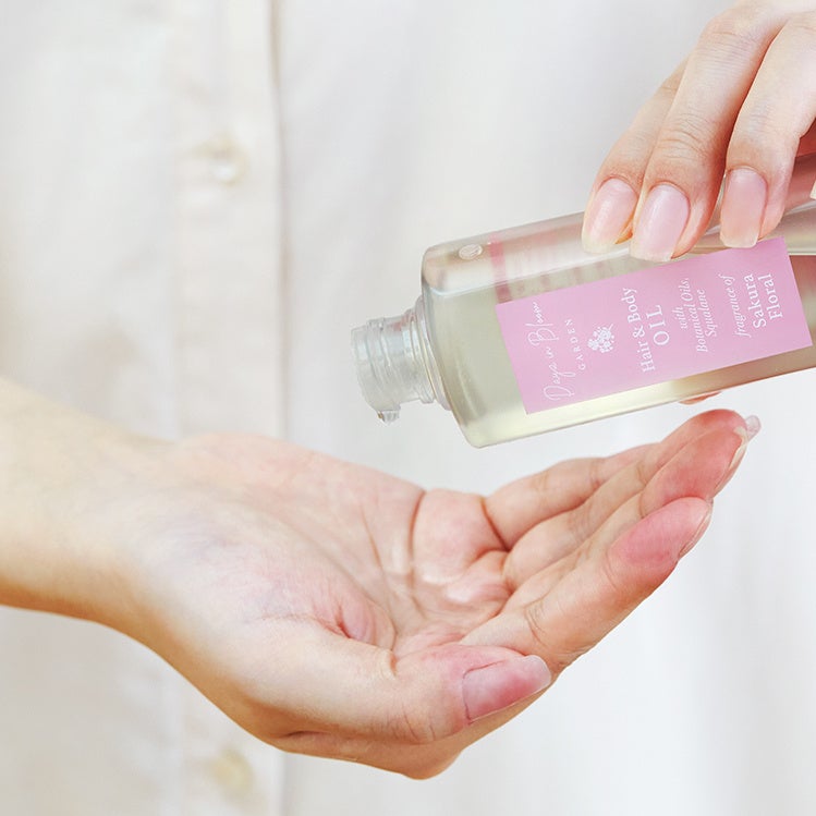 髪に、肌に、春のぬくもりをまとうようなリッチオイル。やわらかな桜フローラルの香りに包まれながら、髪と肌をうるおいで満たしてやわらかく自然なツヤを与え、乾燥などの外的ダメージから守ります。6種の植物オイルとスクワランを配合。ベタつかずスッとなじみ、しっとりなめらかな仕上がりに。
