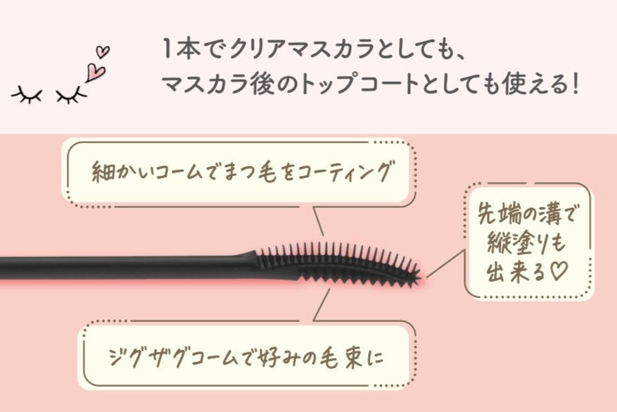 1本でクリアマスカラとしても、トップコートとしてもお使いいただけます♪