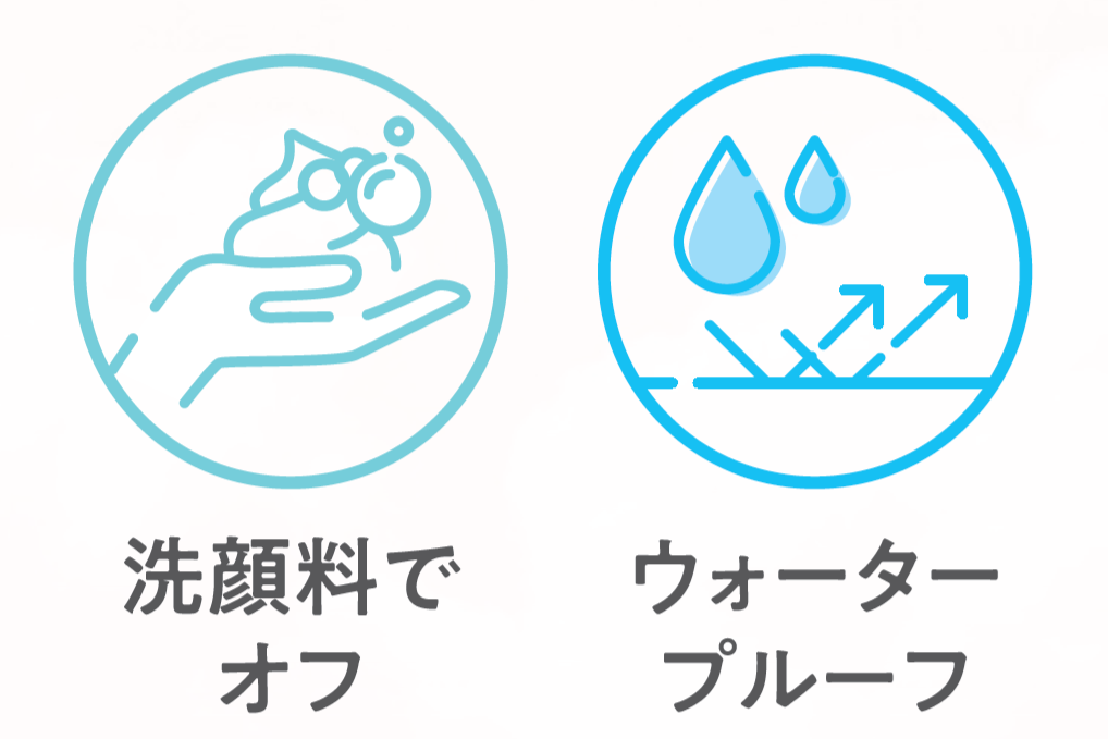 水・汗・涙・皮脂に強く、にじみにくいウォータープルーフ処方。
