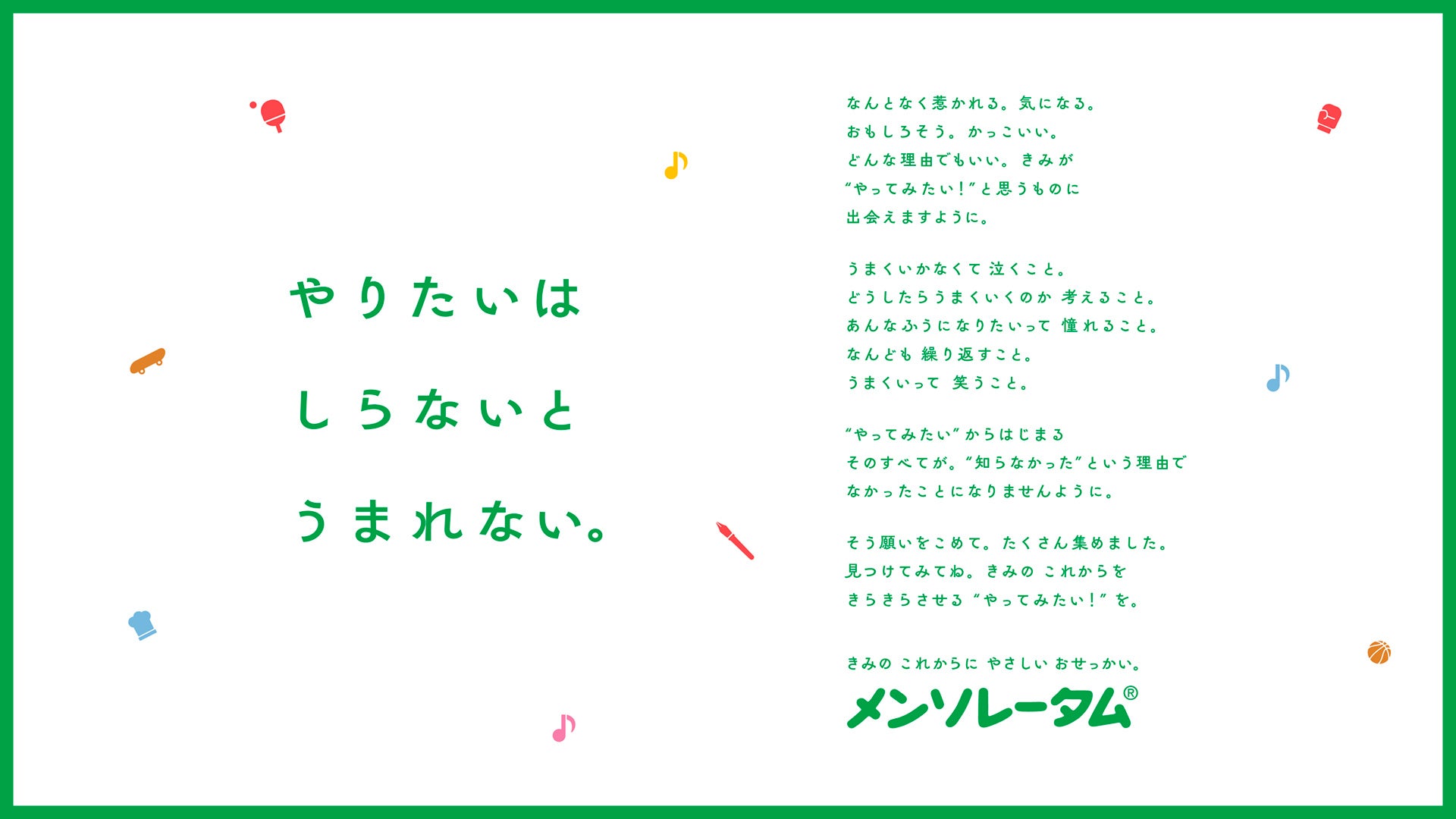 この2つの体験を通じて、メンソレータムは子どもが自分の“やりたい!”という気持ちに出会うこと、そこから広がる可能性を応援します。