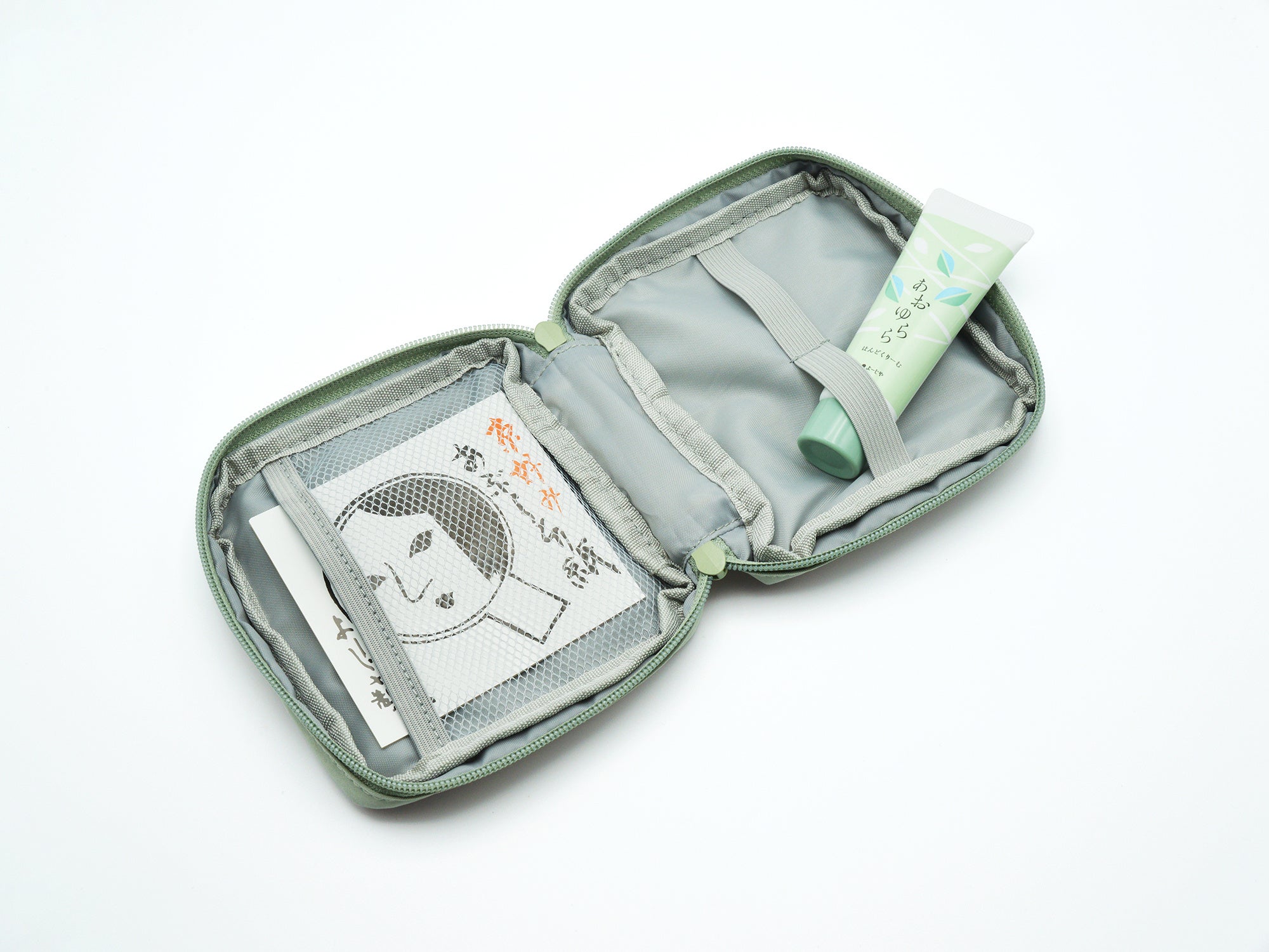 中には仕切りがあるので、イヤホンやコード類の収納におすすめ。「あおゆらら」の香りをイメージした葉っぱがゆらりと揺れる、シンプルで使いやすいデザインです。
