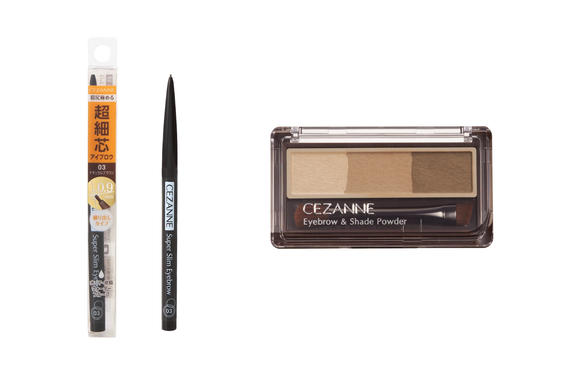 「セザンヌ 超細芯アイブロウ 03 ナチュラルブラウン」と「セザンヌ アイブロウ&シェードパウダー 02 ナチュラルブラウン」を一緒に使えば、簡単に垢抜けブラウン眉が完成!