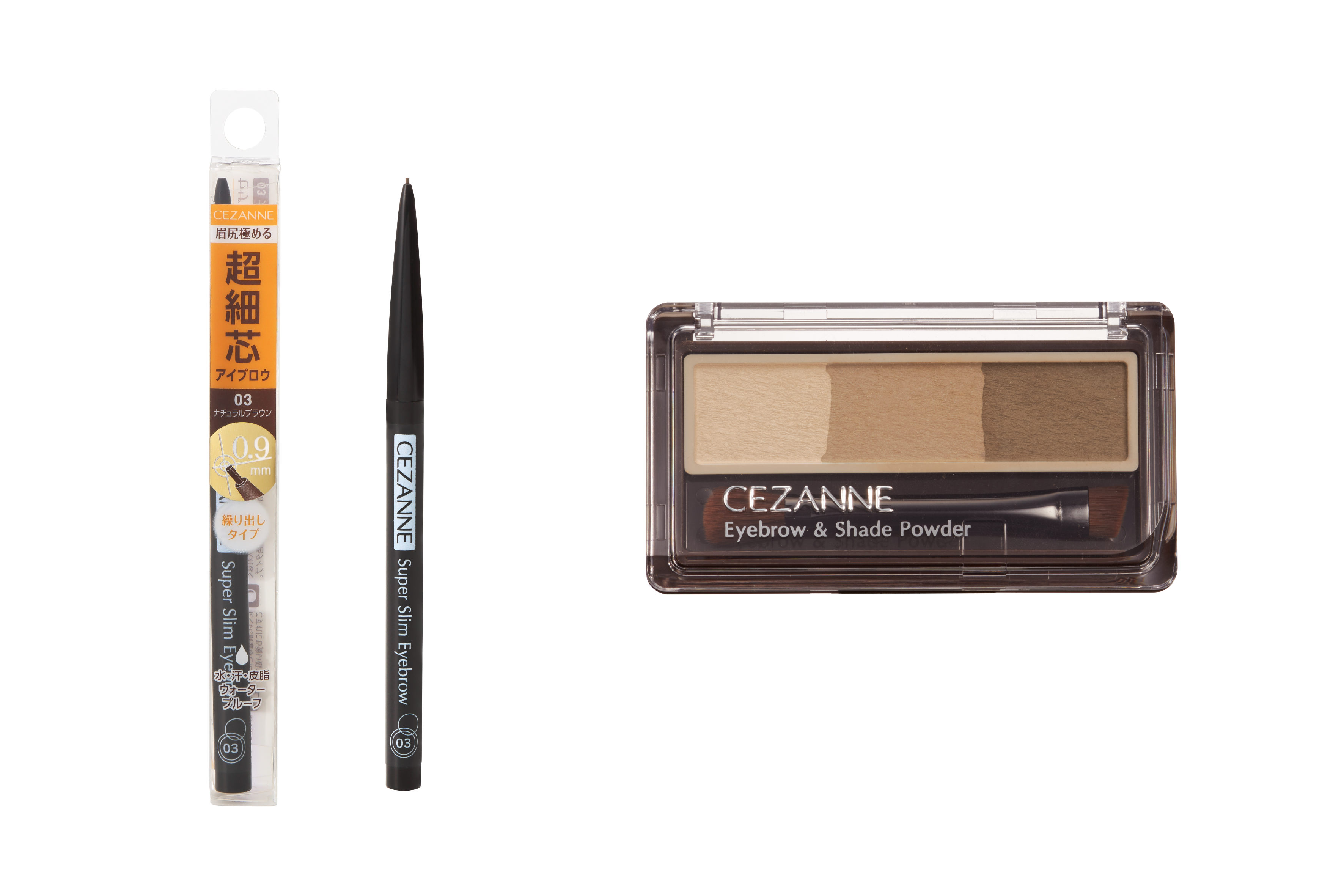 「セザンヌ 超細芯アイブロウ 03 ナチュラルブラウン」と「セザンヌ アイブロウ&シェードパウダー 02 ナチュラルブラウン」を一緒に使えば、簡単に垢抜けブラウン眉が完成!