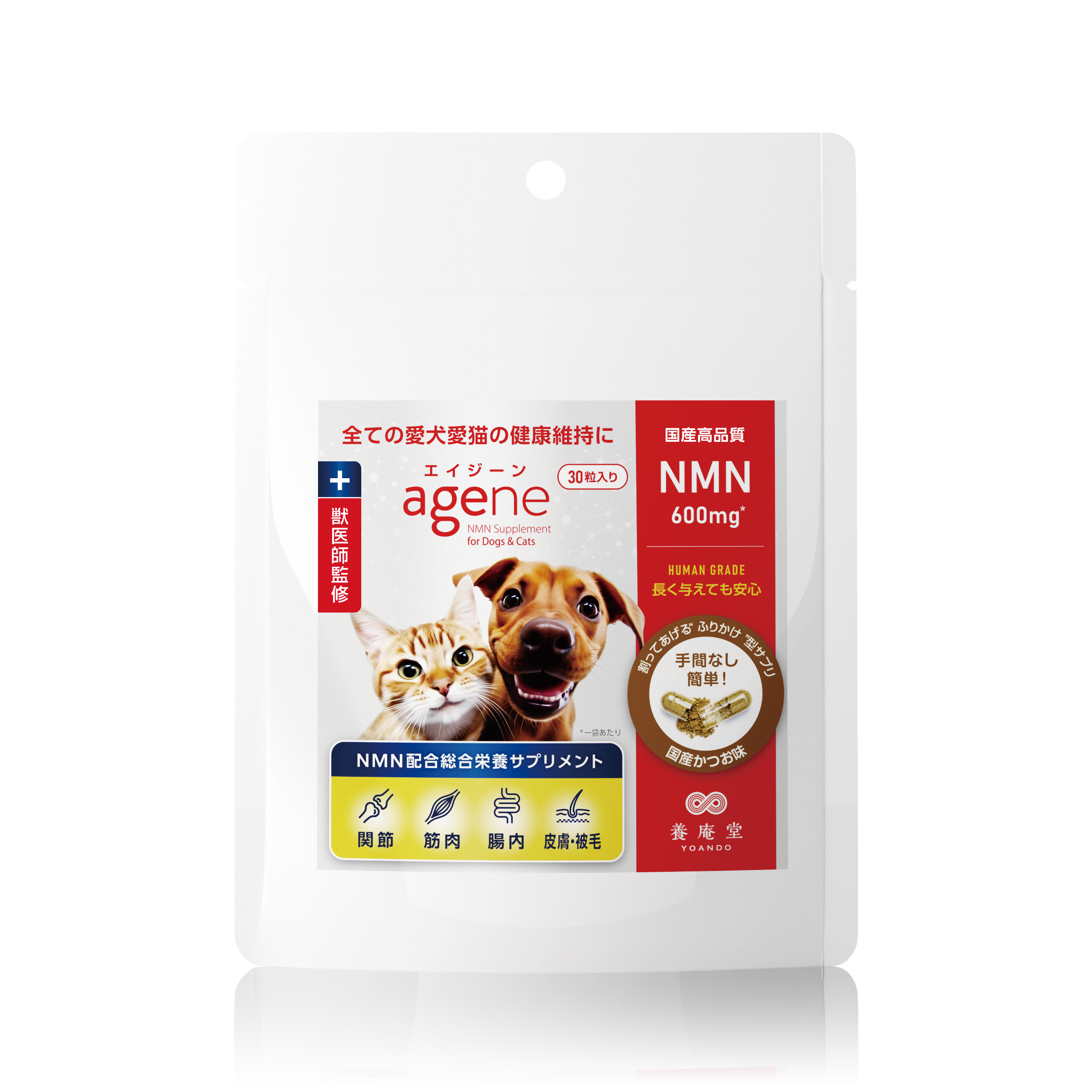 獣医師監修のもと、ヒューマングレードの国産NMNを使用し、腸内環境や関節の健康に配慮した成分設計を行っています。乳酸菌やN-アセチルグルコサミン、各種ビタミン類など、厳選した原料を配合しています。