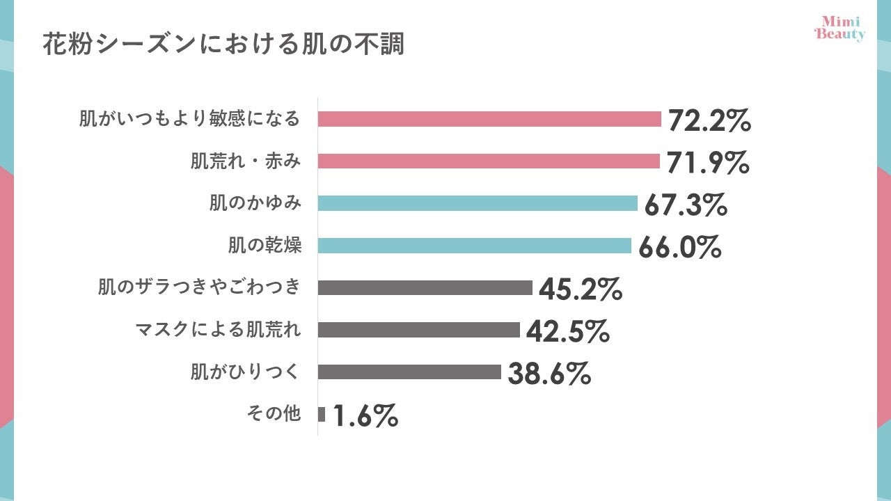 75.3%が花粉症を自認し、84.6%が花粉シーズンにおける肌の不調を感じている