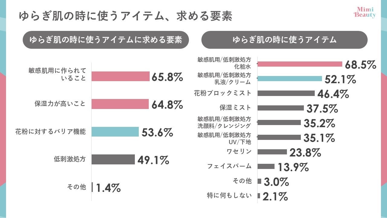 以上の調査から、花粉による肌の不調に悩む多くの美容オタクは、ゆらぎ肌対策をしていることが分かりました。今後もMimi Beautyは、美容オタクの実態を明らかにするため、調査を続けていきます。
