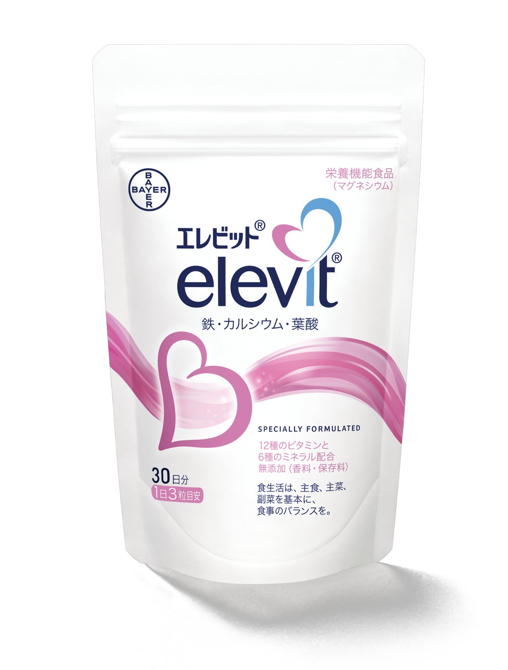 「エレビット®(プレナタルケア)」は、栄養が不足しがちな日本人女性のために作られ、妊活・妊娠中の女性と、お腹の赤ちゃんの成長に不可欠なマグネシウムや葉酸をはじめ、12種類のビタミンと6種のミネラルが、厚生労働省の栄養推奨量を基準に配合されています。