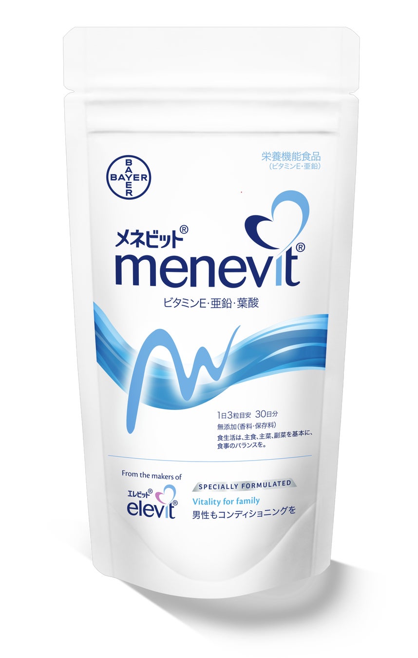 「メネビット®」は、プレナタル**サプリメント「エレビット®」シリーズから生まれた男性用サプリメントです。抗酸化作用を持つ栄養素として代表的なビタミンEや、コンディショニングに大切な細胞の代謝をサポートするミネラルの亜鉛など、男性の妊活を支える9つの栄養素をバランスよく配合したマルチビタミンサプリメントとなっています。