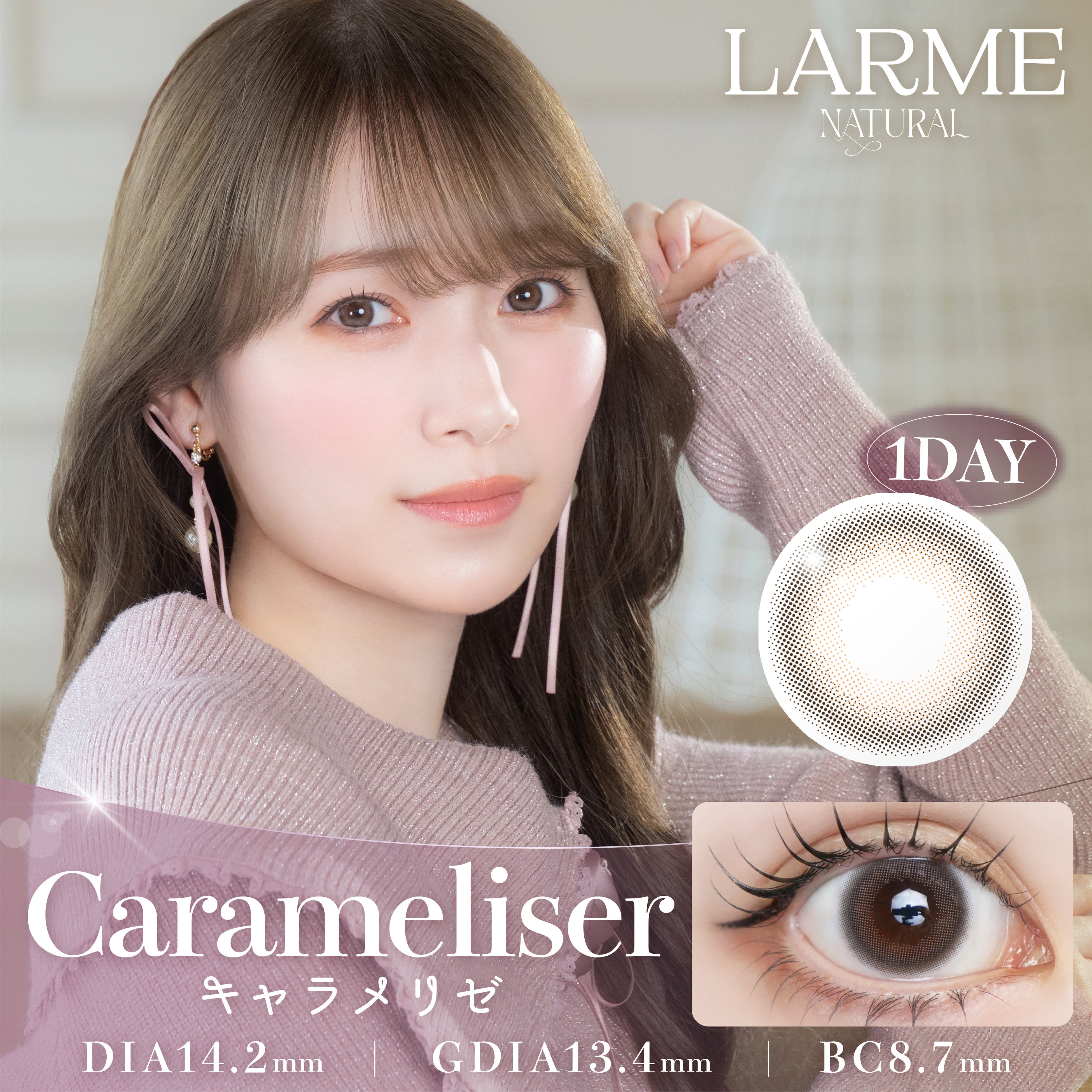 『LARME NATURAL(ラルムナチュラル)』は、1箱20枚入りの日常に寄り添うワンデーカラーコンタクトブランドです。ナチュラルだけどシンプルすぎず、かわいらしさと自然さを両立した毎日使いやすいカラーラインナップを展開しています。