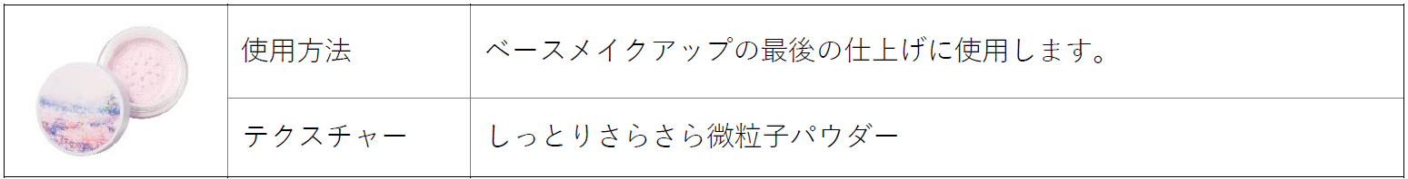 しっとりとした粉質でなめらかな美肌を演出するルースパウダーに、限定のピンクラベンダーカラーが登場。肌補正効果とツヤ感はそのままに、ほんのりピンクのパウダーが肌の黄ぐすみを自然に晴らします。ポーチインできてメイク直しにもぴったり。