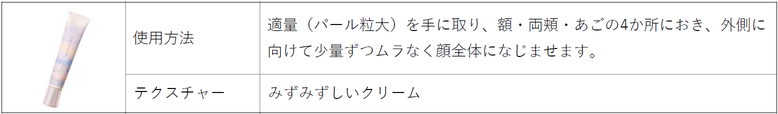 ベージュカラーの下地が吸い付くように肌に密着。毛穴の凹凸やくすみをフラットに整え春色メイクが映える肌に。光拡散処方で多方面から光を集め、肌を自然にトーンアップします。