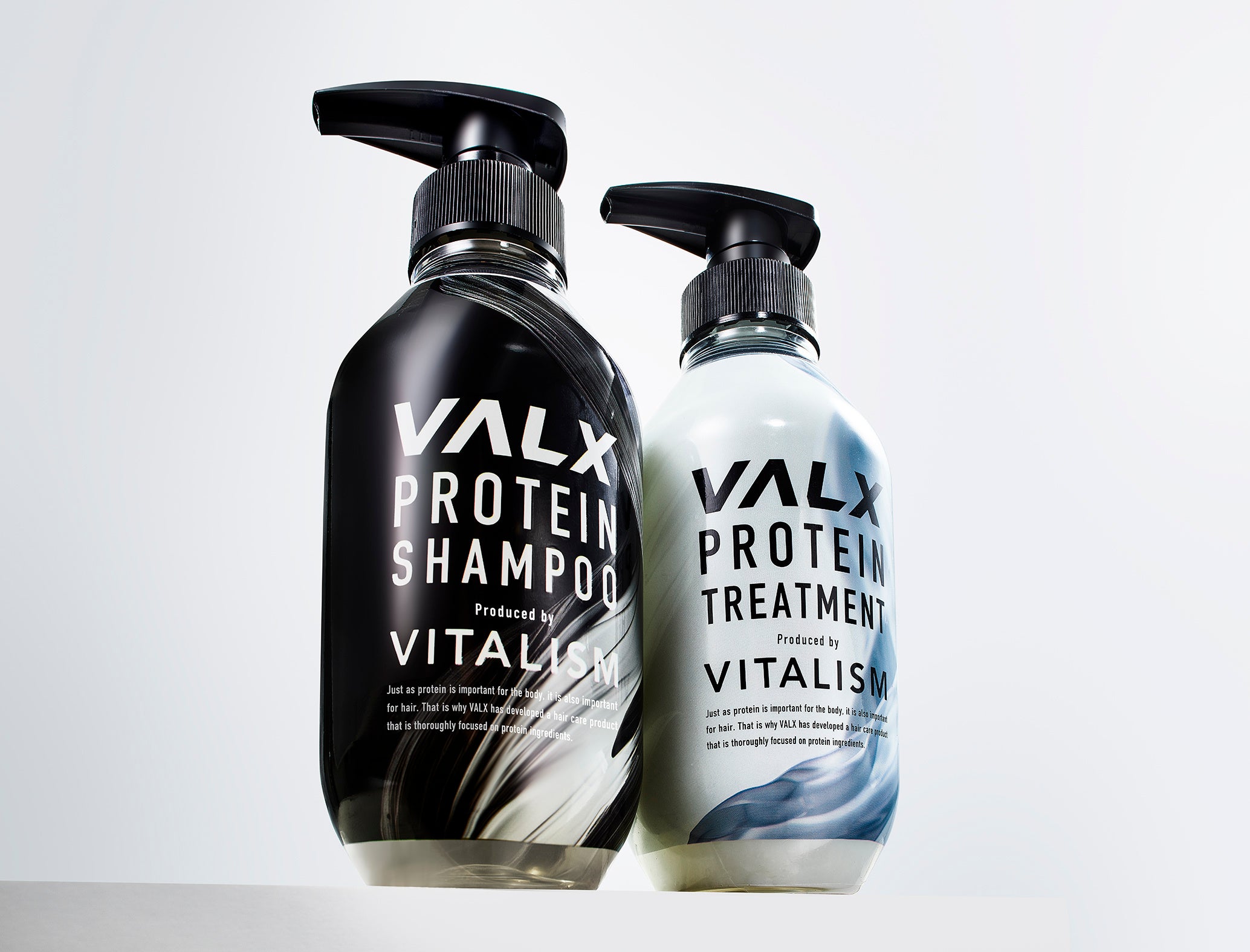 プロテインの力を存分に活かすために設計された「VALX プロテインシャンプー」と「VALX プロテイントリートメント」。