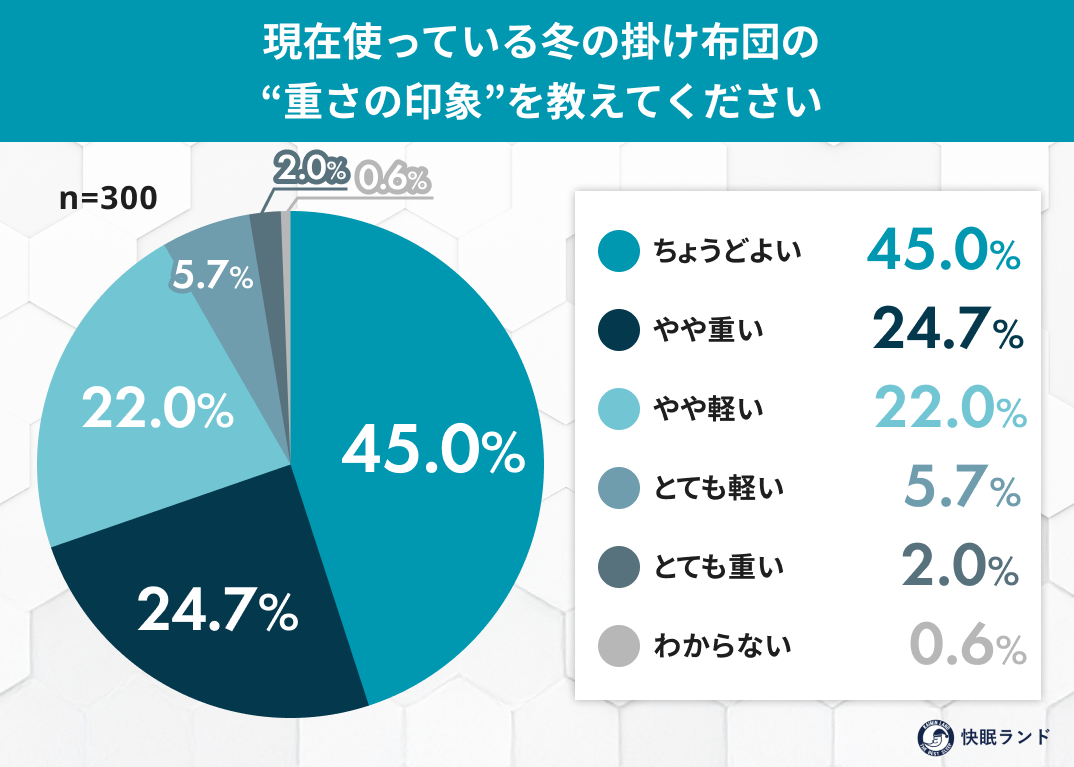 掛け布団の重さについて「ちょうどよい」と感じている人は45.0%