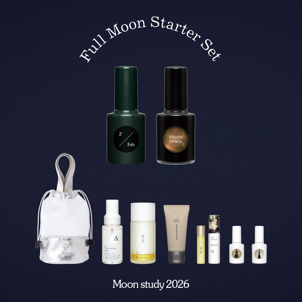 予約がスタートするのは、1月19日(月)に発売するuka Moon study 2/Febと、ukakau(公式オンラインストア)限定のフルムーンスターターセット。2026年、ネイルケアをがんばるあなたにお届けする、自爪を労わりながら、健やかで美しい爪を育てたい方におすすめのスターターセットです。忙しい日々の中でも、満月のサイクルに合わせて爪と手を労わって。