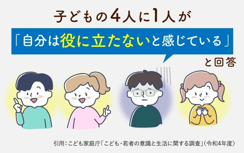 将来への不安だけでなく、多くの子どもが「自分には価値がないのではないか」「誰の役にも立てていないのではないか」という思いを抱えている現状がうかがえます。