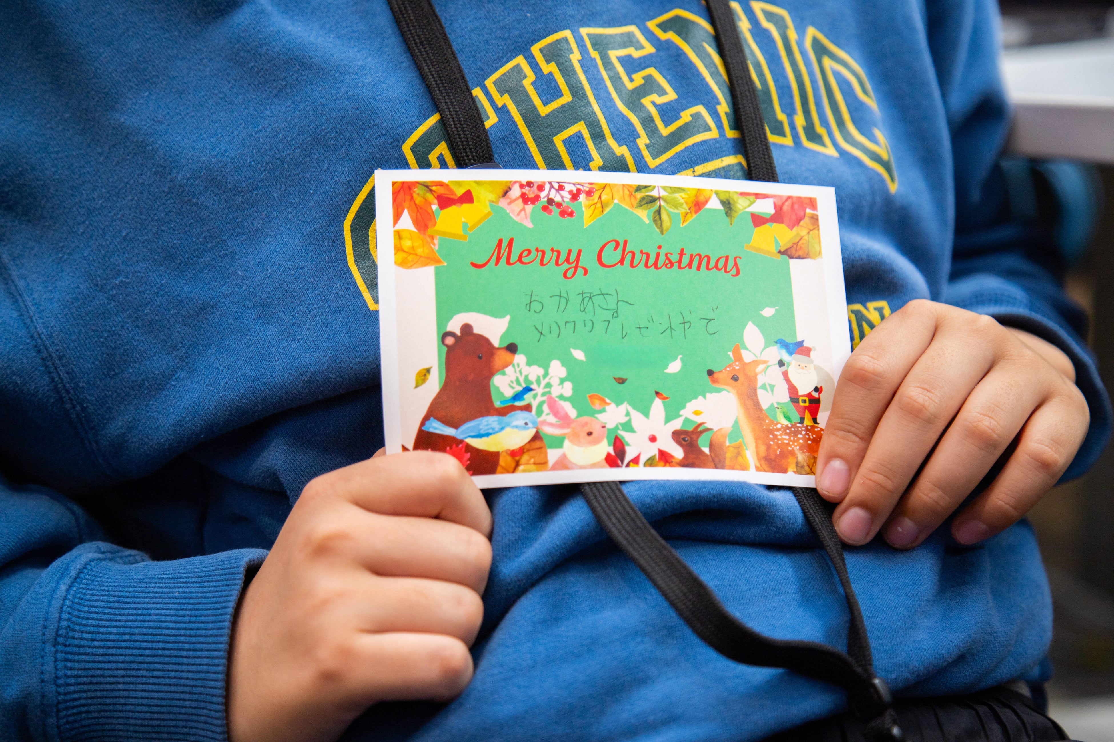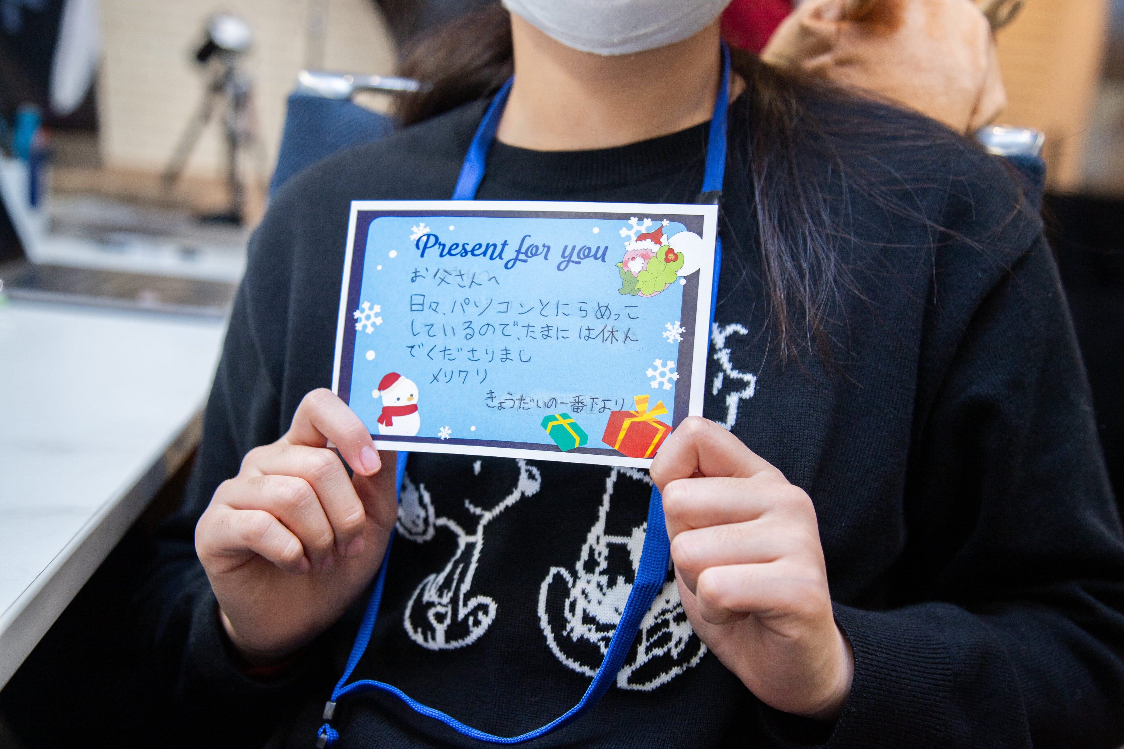 「おかあさんはクリスマスプレゼントもらえないから、『メリークリスマス』のメッセージをカードにのせたい!」