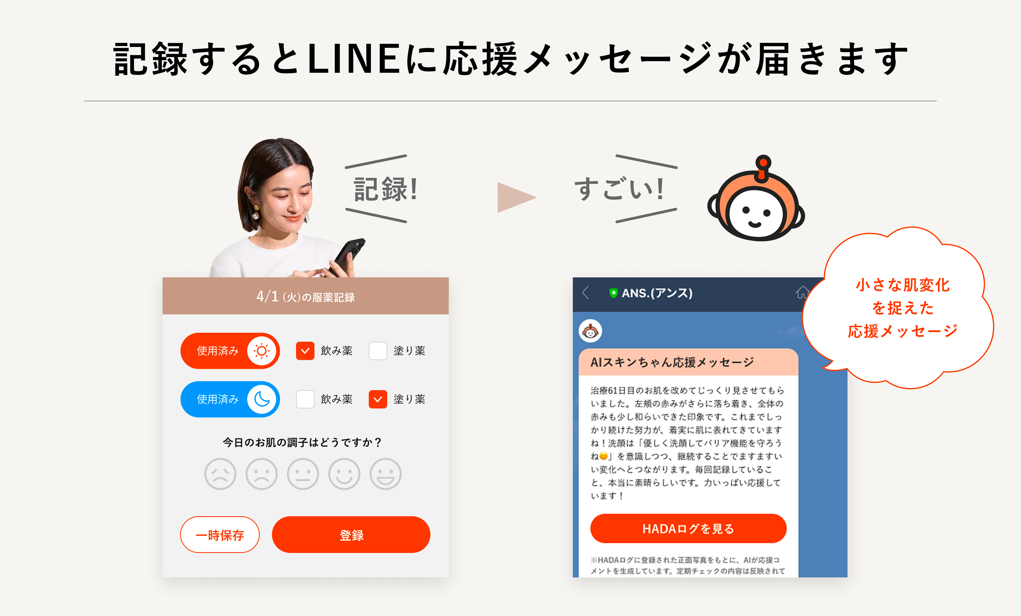 現在では、累計利用者が26万人以上の方にご利用いただいています。ANS.ではお薬などが届いた後も、肌に関するお悩みやお薬の服用に関しての疑問などをチャットで専門家に相談ができ、ユーザーの理想の肌を叶えるための「伴走型のオンライン肌管理サービス」として、みなさまの肌と心に寄り添います。