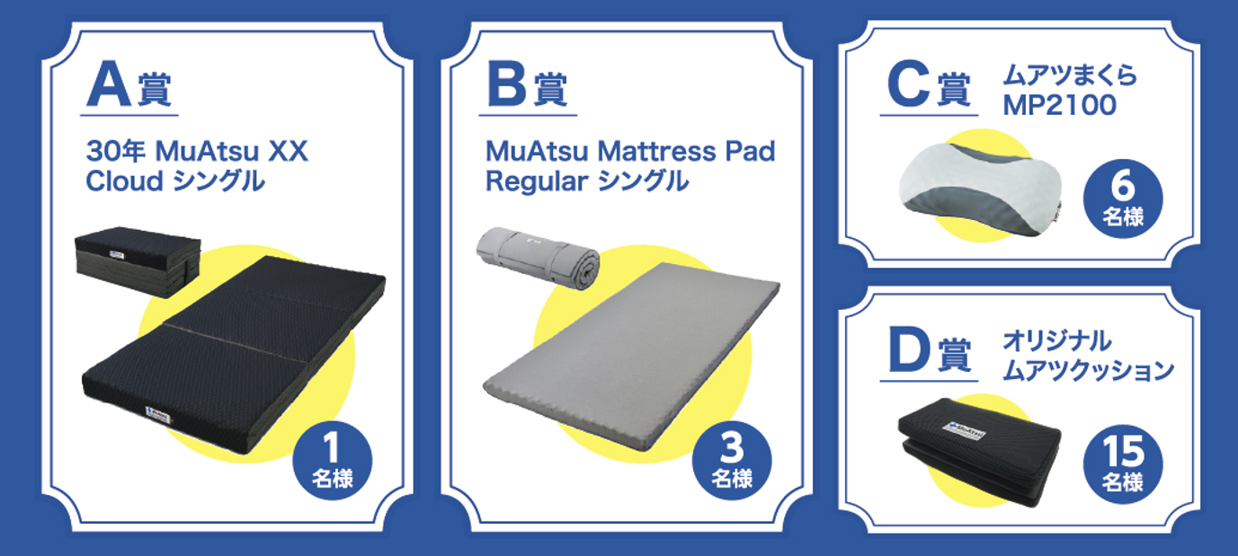 皆様に愛されて、今年55年を迎えるMuAtsu(ムアツ)マットレス。累計出荷台数が450万台を突破した記念に、公式ECサイトにて開催中の第1弾に続き、1月26日(月)からは第2弾としてSNS企画を実施!ムアツ公式SNS(X,Instagram)をフォロー&対象投稿リポストでご応募いただいた方の中から抽選で25名様にプレゼントをお送りいたします。ぜひご参加ください。