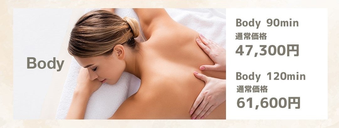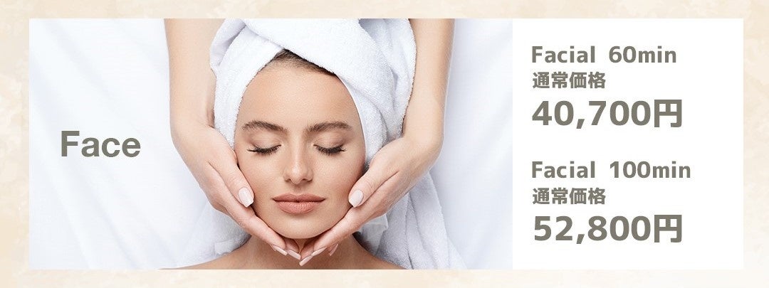 ・Facial 60min ≪通常価格≫ 40,700円 ・Body 90min ≪通常価格≫ 47,300円