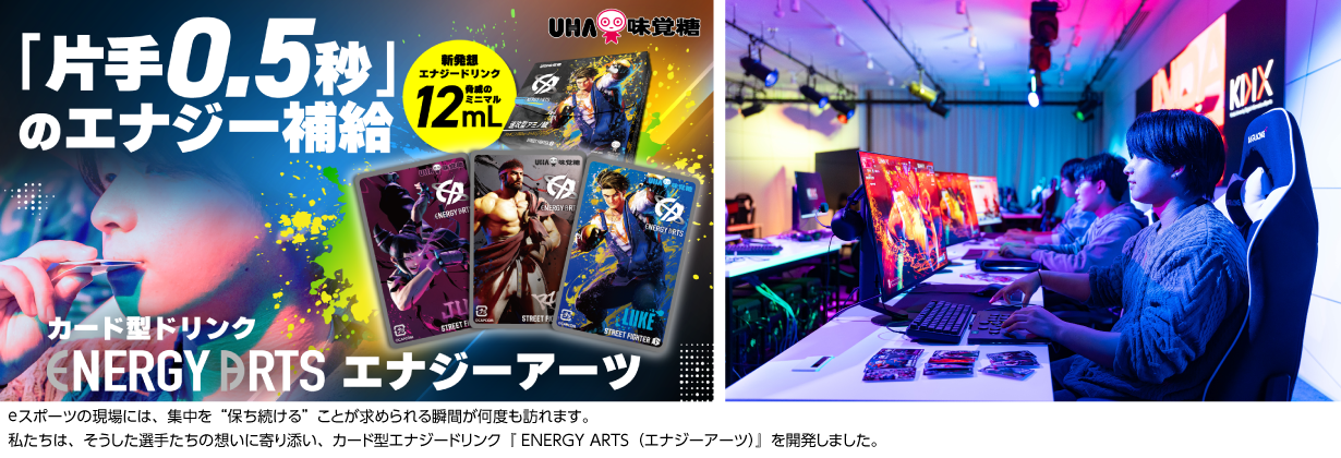 今回、KZHCUPにUHA味覚糖『ENERGY ARTS』による協賛が決定しました。大会の副賞として本商品の提供など様々な形で、KZHCUP、ストリートファイター6、そしてeスポーツ界をサポートして参ります。